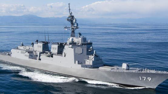 A Japanese destroyer arrives in the U.S. for Tomahawk missile installation.